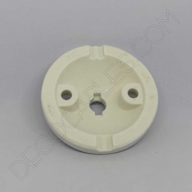 Florón pequeño de cerámica esmaltada en blanco para lámparas de techo. Embellece el final de la lámpara junto al techo y evita que se vean las conexiones de los cables de la luz.