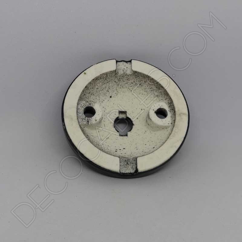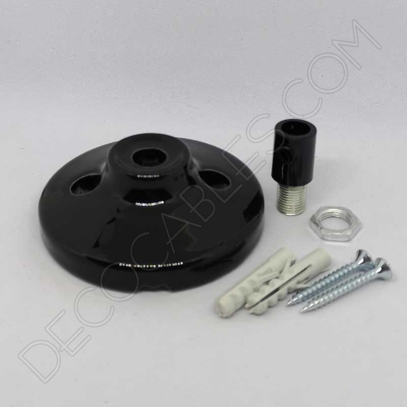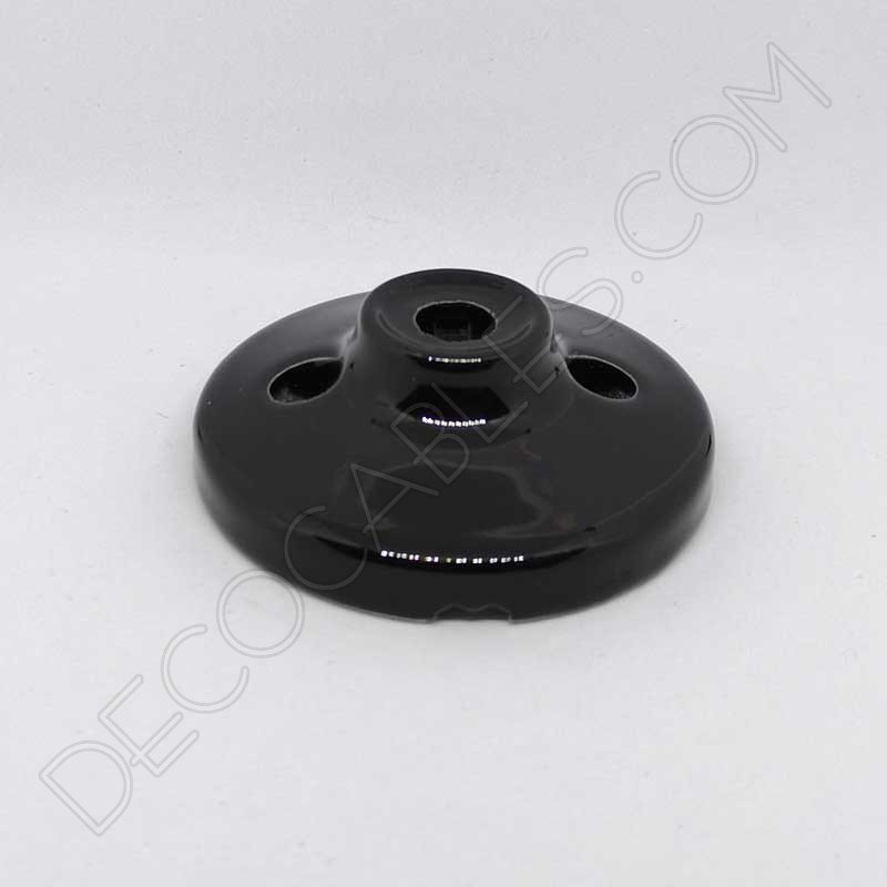 Florón pequeño de cerámica esmaltada en negro para lámparas de techo. Embellece el final de la lámpara junto al techo y evita que se vean las conexiones de los cables de la luz.
