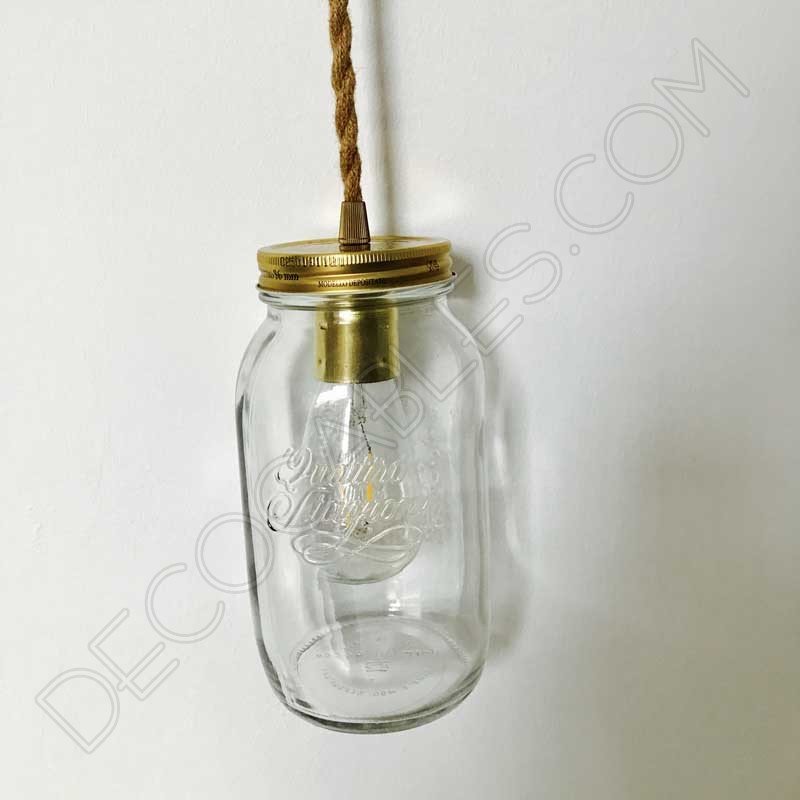 Lámpara de techo Vintage, la nueva creación de nuestros diseñadores, en exclusiva para Decocables. Vienen listos para colgar, sólo tienes que elegir la bombilla que más te guste. Disponible en Tarros de dos tamaños (Grande y Chico) y en dos medidas de largo a elegir (1m o 1,5m).