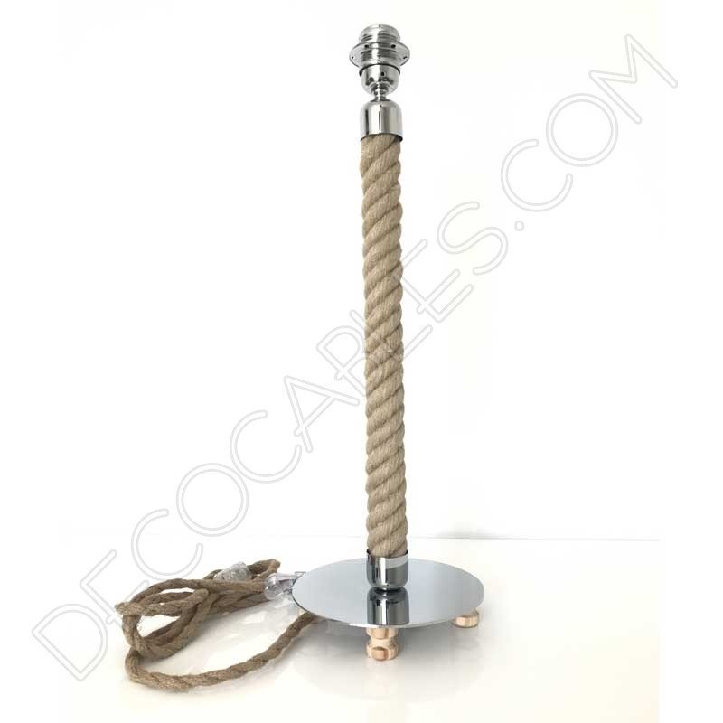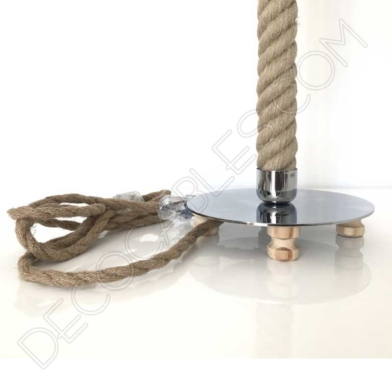 Lámpara de sobremesa con pie de cuerda de cáñamo. Diseño único con un toque Retro. Sólo disponible en nuestra tienda online. La cuerda de soga aporta calidez y elegancia a tu decoración eléctrica y nunca pasa de moda. Colócale la pantalla que más te guste y tendrás una lámpara de sobremesa creada especialmente para ti por nuestros diseñadores (pantalla no incluida).