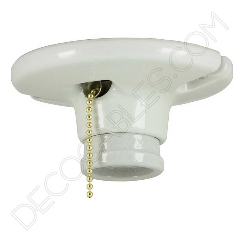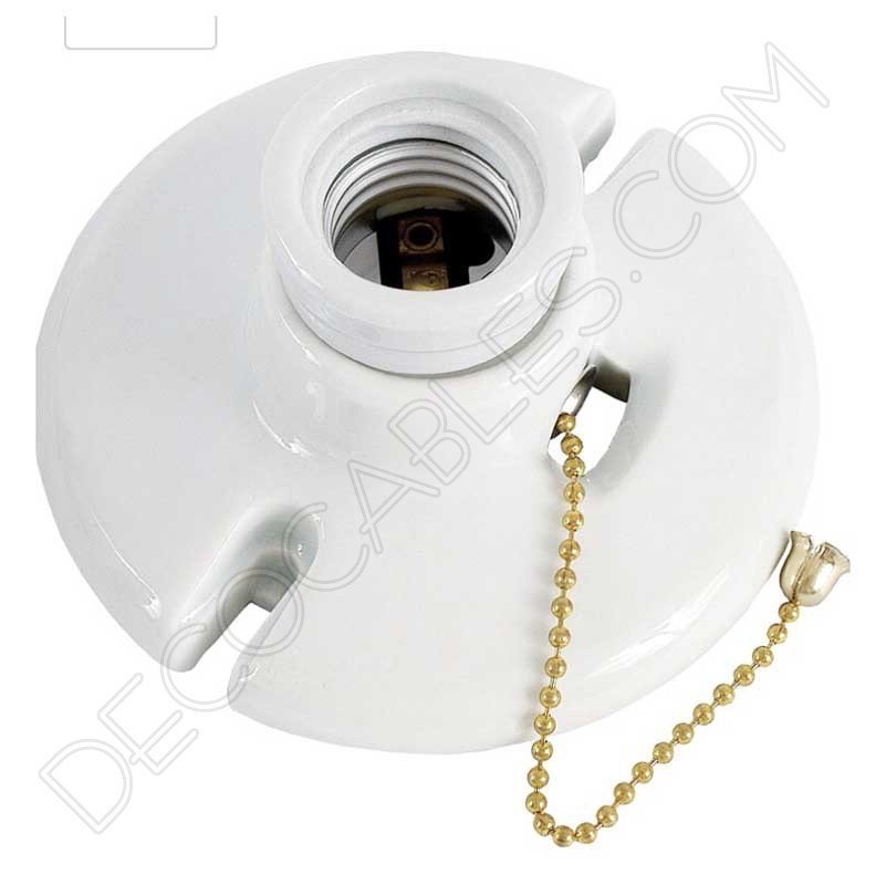 Portalámparas zócalo inspirado en los modelos antiguos de porcelana para pared o techo. Con interruptor de cadena on/off. Combínalos con bombillas decorativas tipo Edison, realzará cualquier punto de luz en las estancias de tu hogar o negocio dando ese toque de antaño que tan de moda está este 2018.