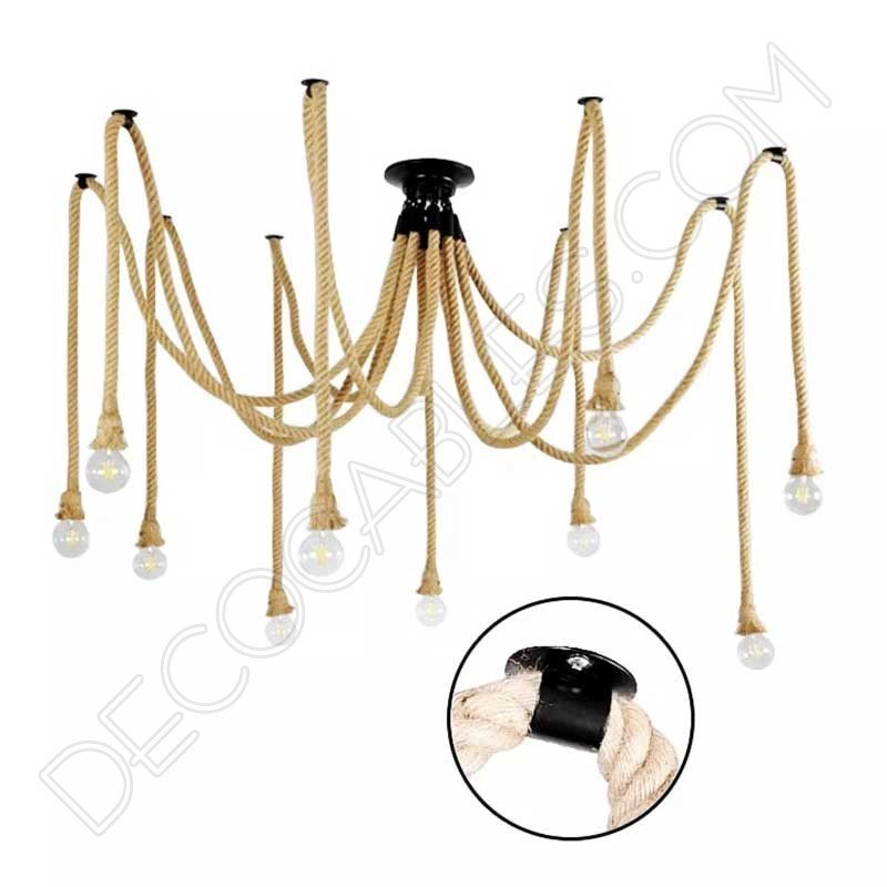 Sujeción metálica de techo para cable, indicada especialmente para cable eléctrico de soga de cuerda grosor 20mm. Perfecta para realizar lámparas araña con este tipo de cable.